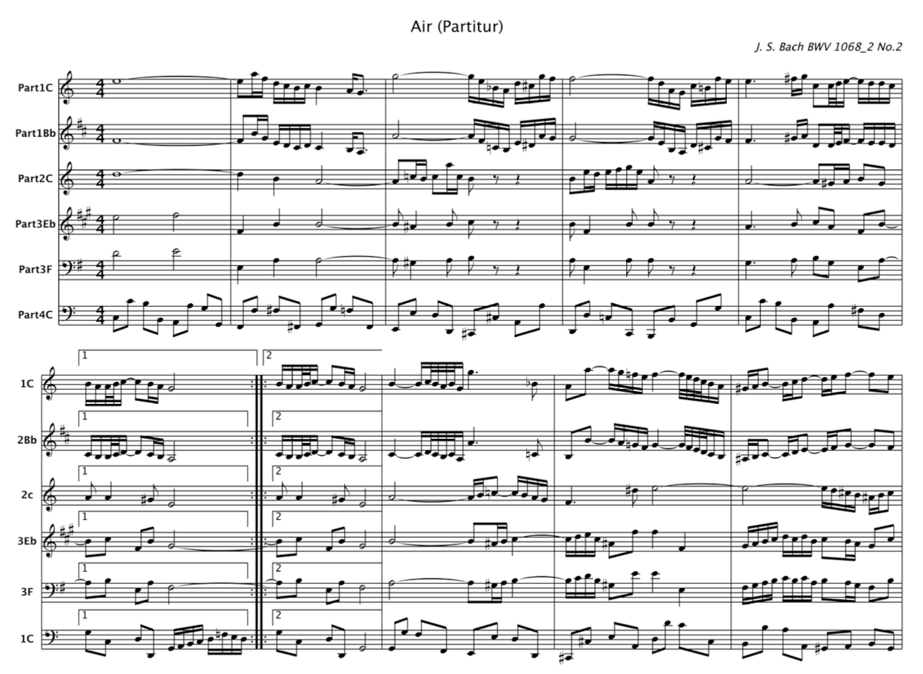 Transcription of J.S. Bachs Air (BWV 1068, 2.movement, G major) for Brass and Woodwinds.