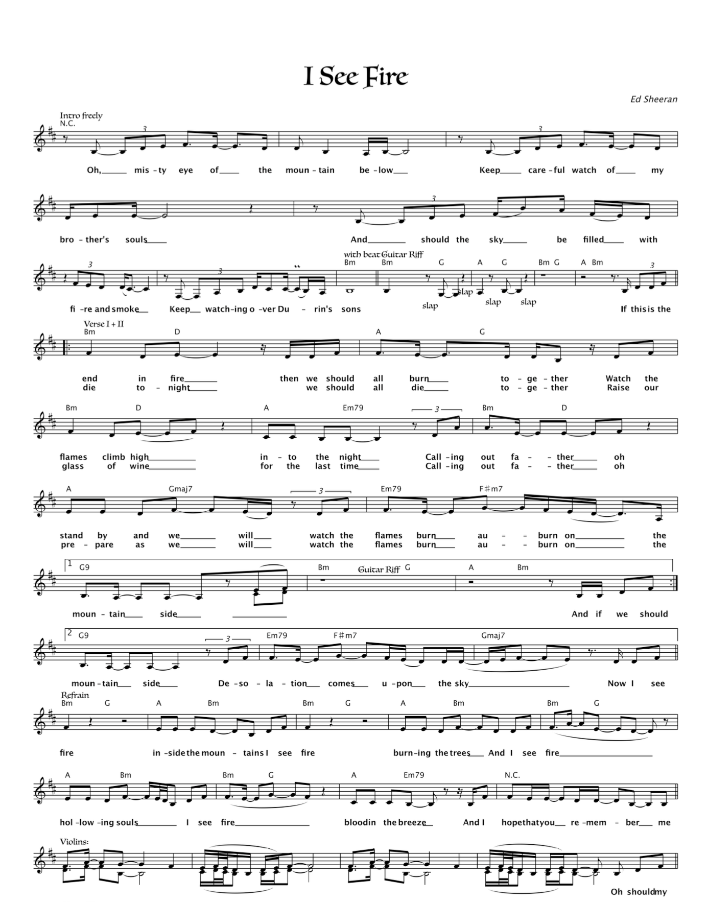 Transcription of Ed Sherans awesome song for the Hobbit.